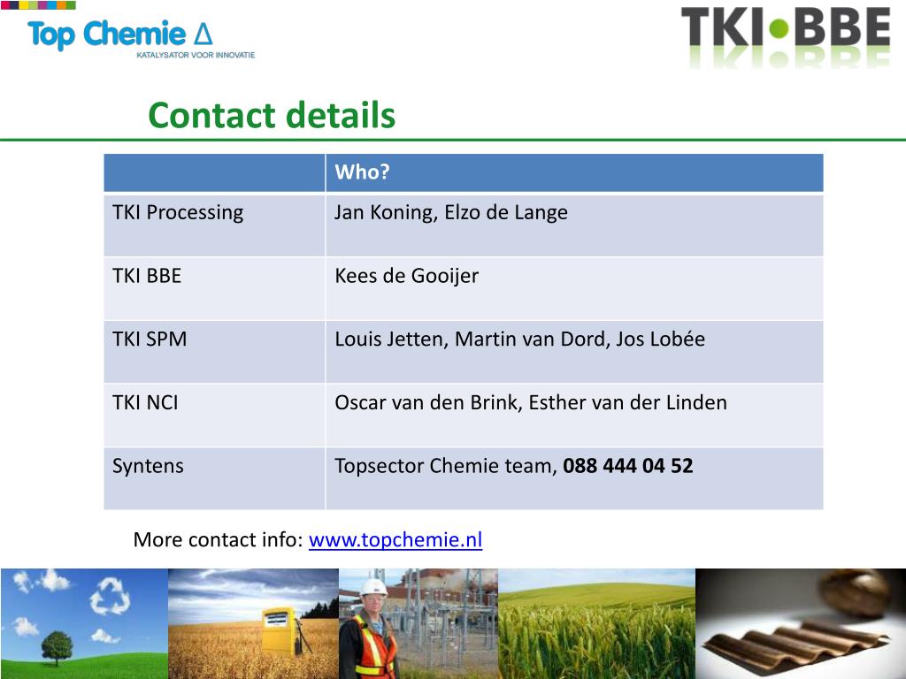 Infobijeenkomst TKI-BBE. 10.00 Welkom door Kees de Gooijer, CIO TKI BBE 10.10 BBE in de Topsectoren , Karin Weustink, plv directeur BBE MinEZ 10.20 NWO en BBE, Tanja Kulkens, adj. directeur Chemische Wetensch . 10.40 STW en BBE, Ron Winkler, programmaleider bij STW