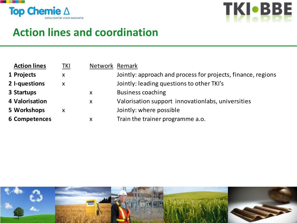Four cooperating TKI’sone network for innovation, valorisation, entrepreneurship Top Chemie Δnetwork is interface of topsector withregion: • To let entrepreneurs in the regioninnovatefaster/better • Cooperation withregional partners:addingvalue, complementary, notcompetingwith...