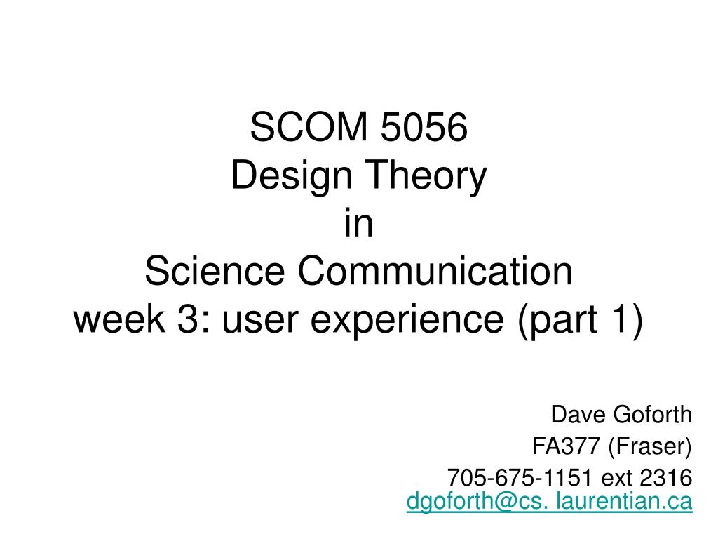 SCOM 5056Design TheoryinScience Communicationweek 3: user experience (part 1) Dave Goforth FA377 (Fraser) 705-675-1151 ext 2316 dgoforth@cs. laurentian.ca
