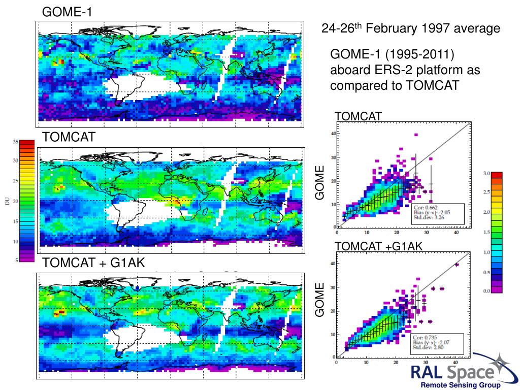 GOME-1 24-26th February 1997 average GOME-1 (1995-2011) aboard ERS-2 platform as compared to TOMCAT TOMCAT TOMCAT GOME TOMCAT +G1AK TOMCAT + G1AK GOME