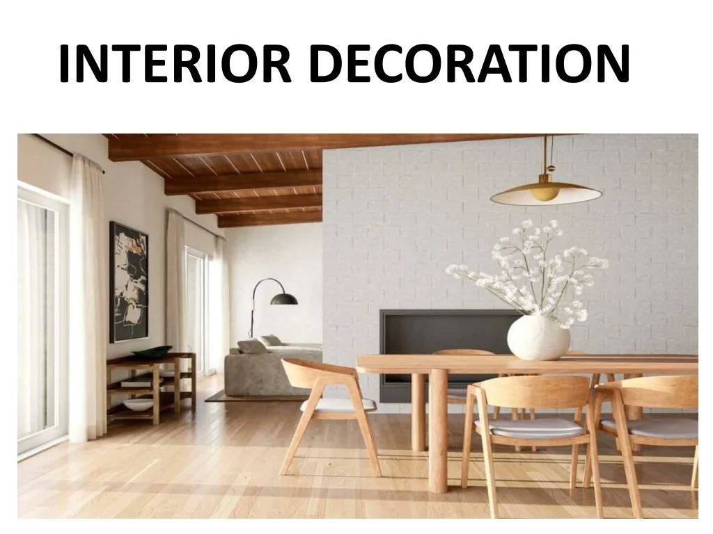 INTERIOR DECORATION Our Interior Decoration service are capable to make all the difference when it comes to the ambiance and aesthetics of your place. Good Interior Decoration can properly aligned with any space with the aims, vision, and values of the users and he or she can benefits from the incredible results. Our Interior Decoration service ensure that your home and working space has been optimized to its fullest potential.