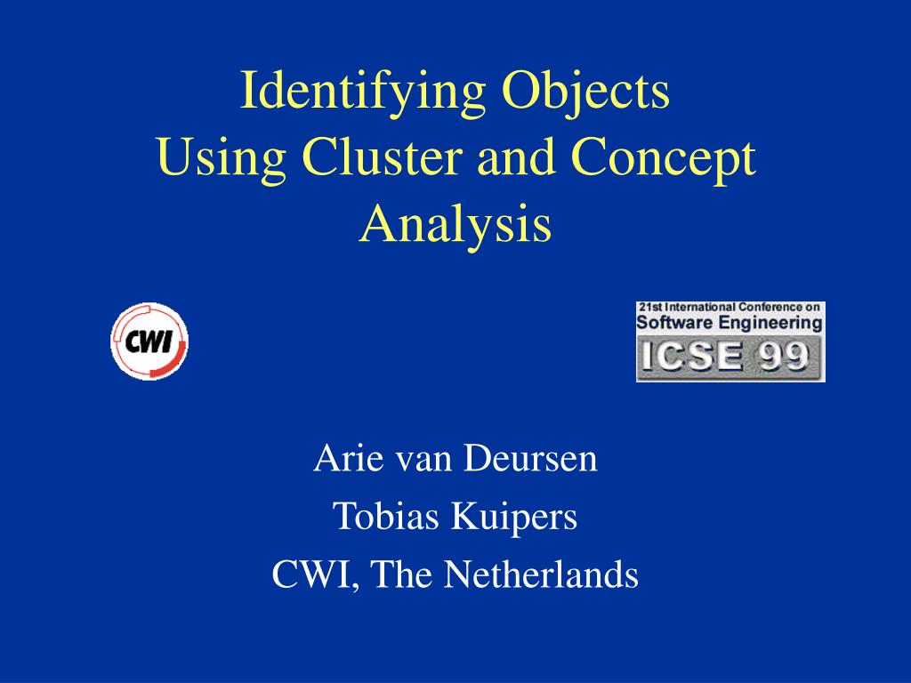Identifying Objects Using Cluster and Concept Analysis Arie van Deursen Tobias Kuipers CWI, The Netherlands
