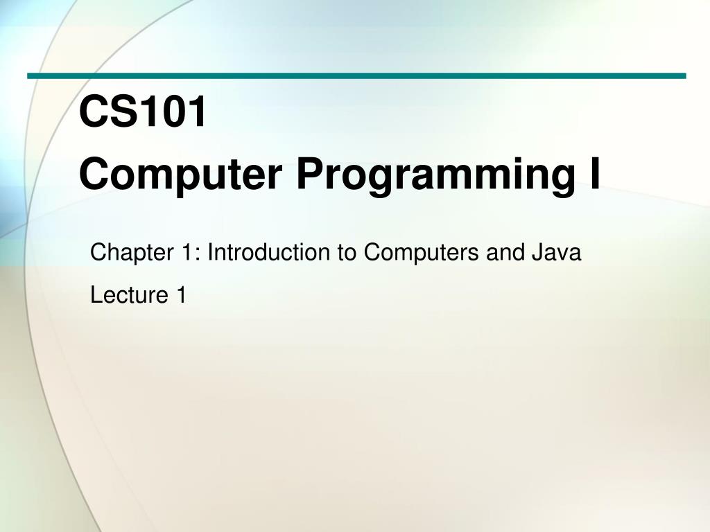CS101 Computer Programming I. Chapter 1: Introduction to Computers and Java Lecture 1. Topics. 1.1 Introduction 1.2 Computers: Hardware and Software 1.4 Computer Organization 1.5 Computer Languages 1.6 Introduction to Object Technology 1.9 Programming Languages