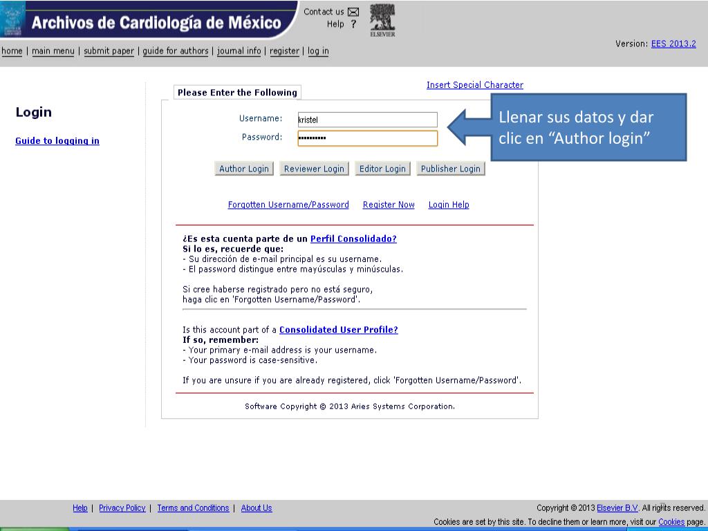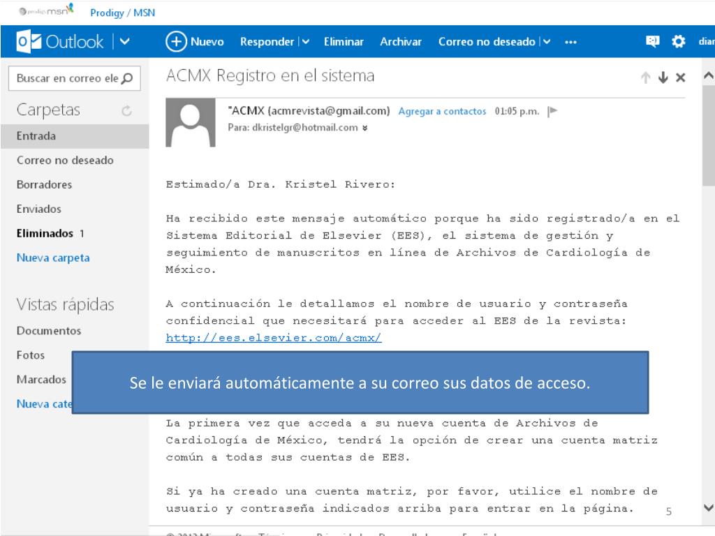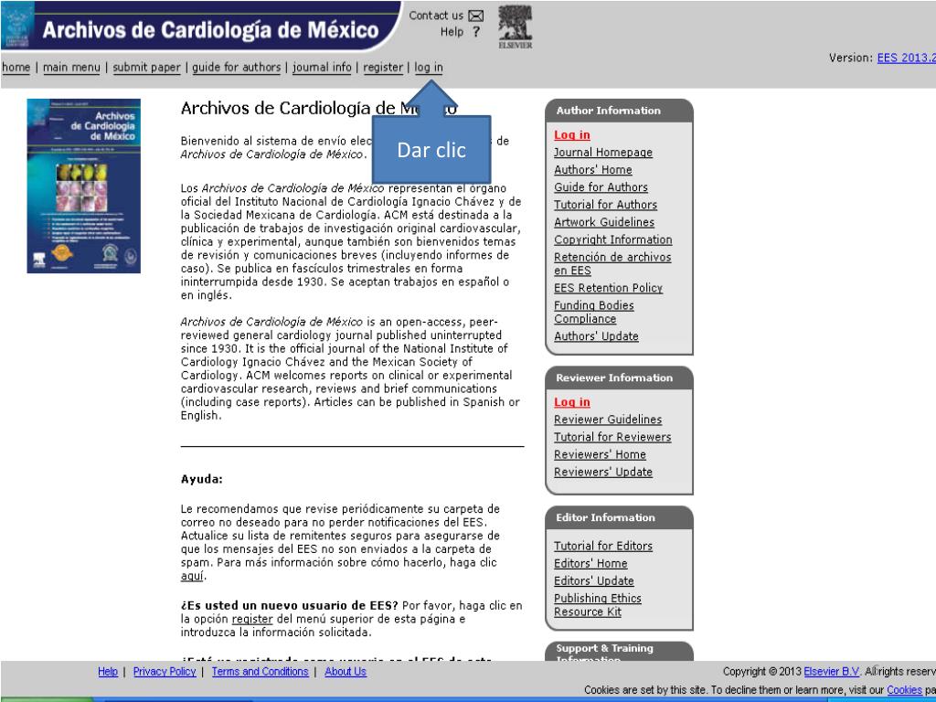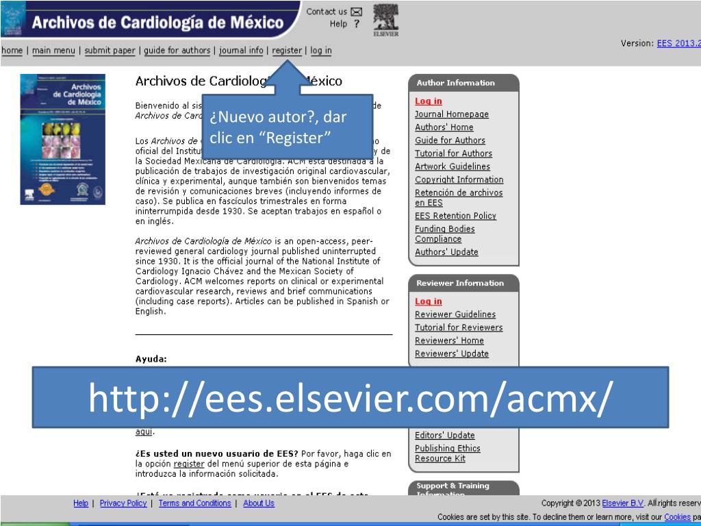¿Nuevo autor?, dar clic en “Register” http://ees.elsevier.com/acmx/