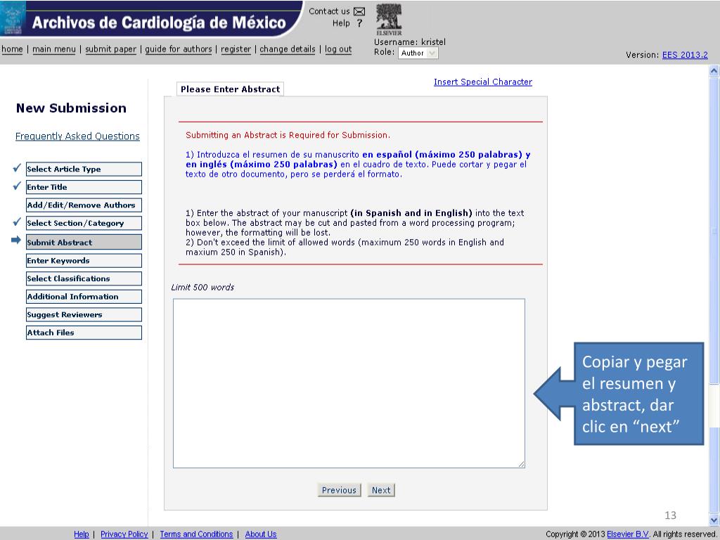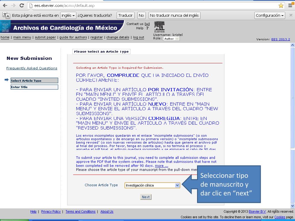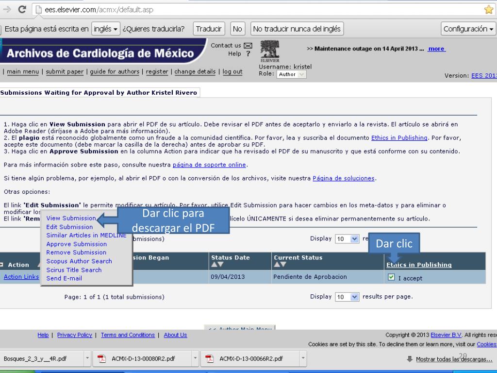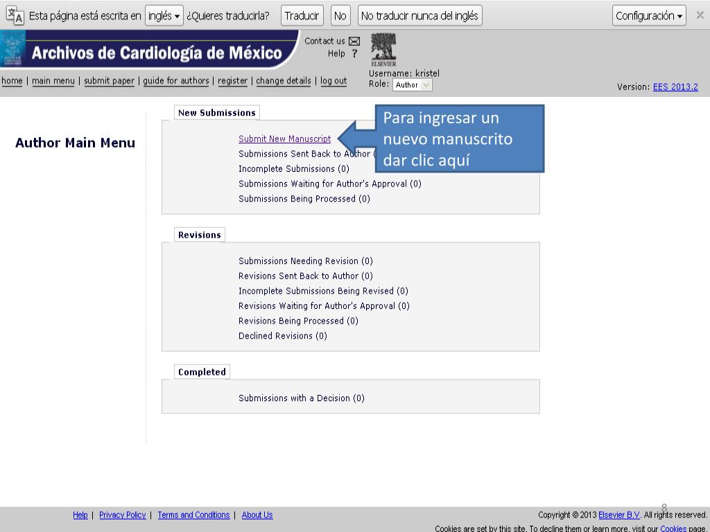 ¿Nuevo autor?, dar clic en “Register” http://ees.elsevier.com/acmx/
