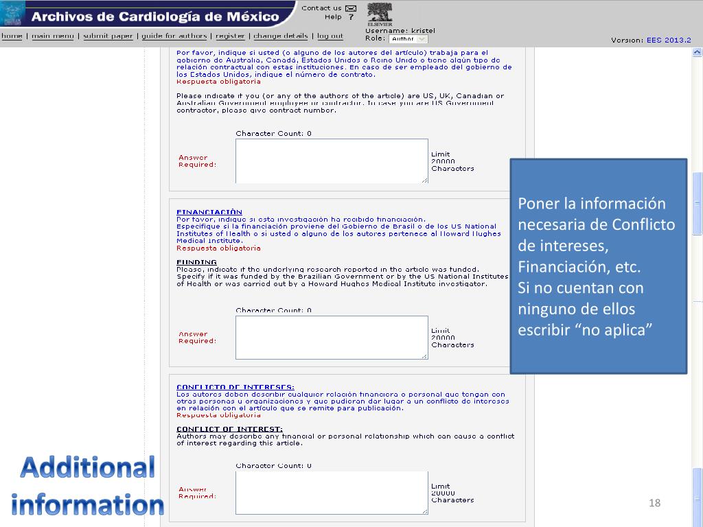 Poner la información necesaria de Conflicto de intereses, Financiación, etc. Si no cuentan con ninguno de ellos escribir “no aplica” Additionalinformation
