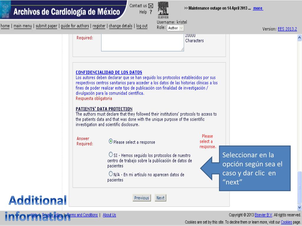 Seleccionar en la opción según sea el caso y dar clic en “next” Additionalinformation