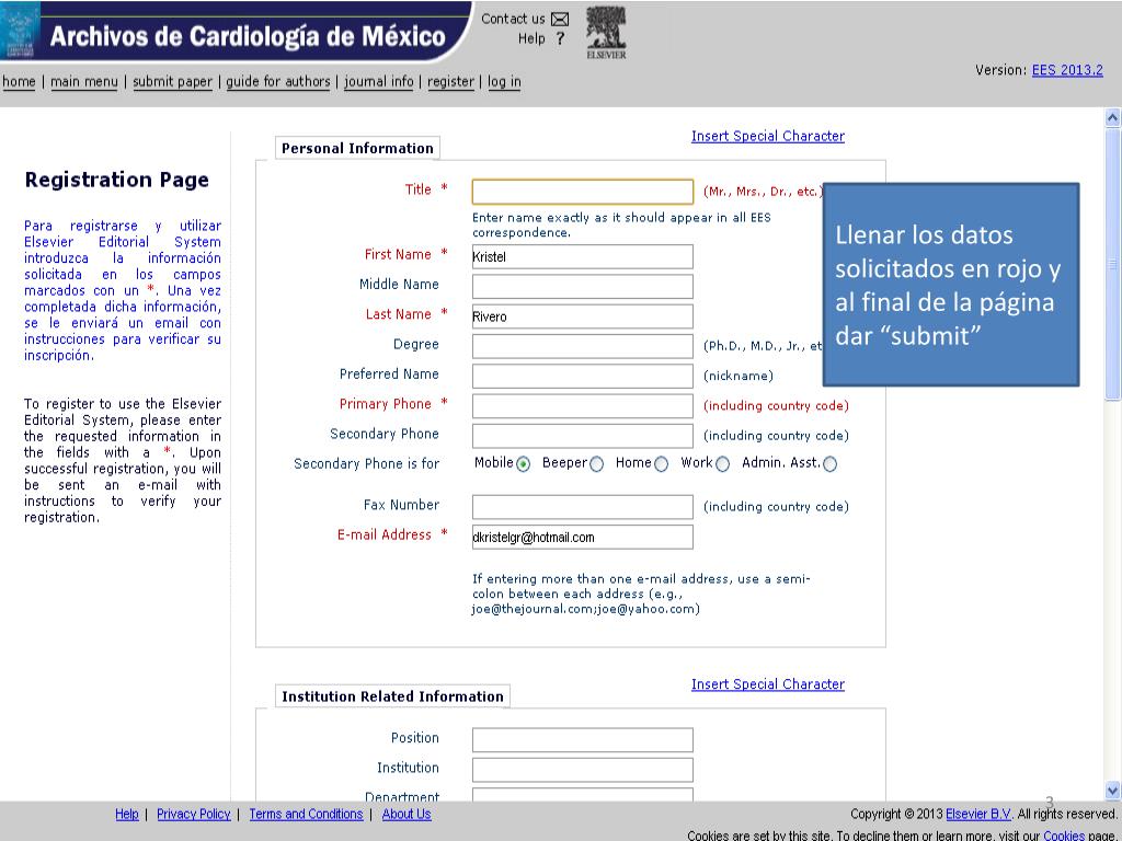 Llenar los datos solicitados en rojo y al final de la página dar “submit”