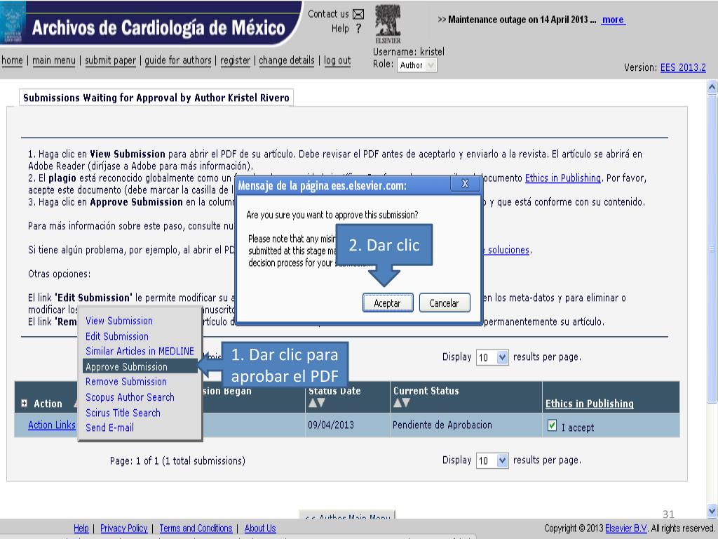 2. Dar clic 1. Dar clic para aprobar el PDF
