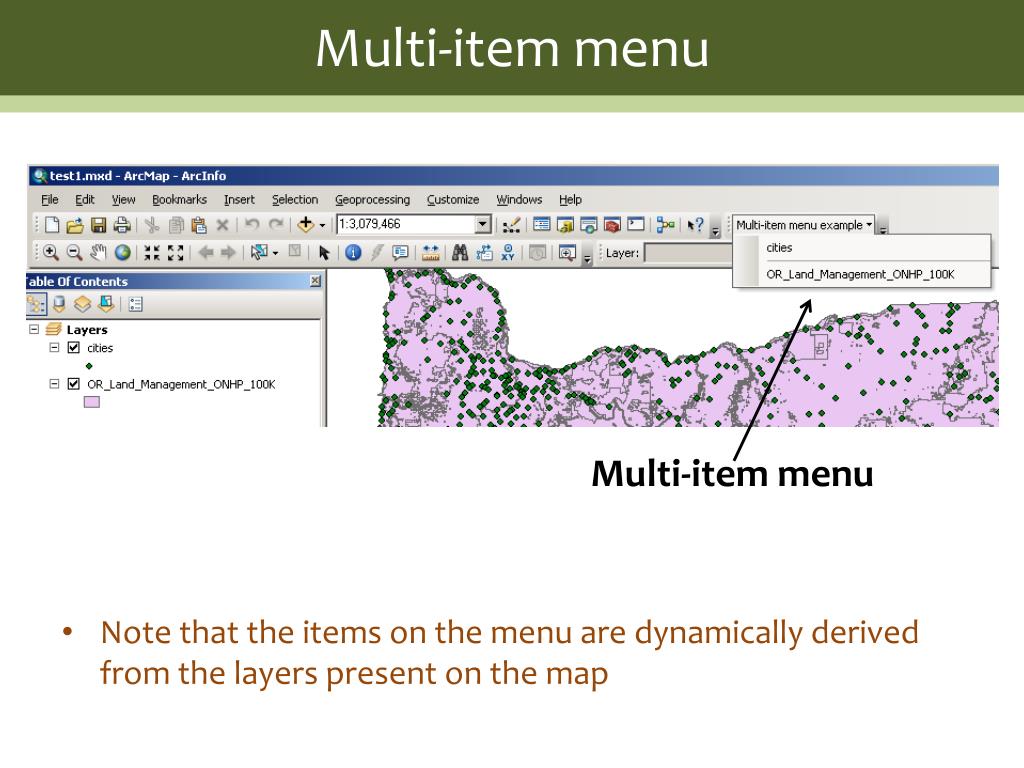 Multi-item menu • Note that the items on the menu are dynamically derived from the layers present on the map Multi-item menu