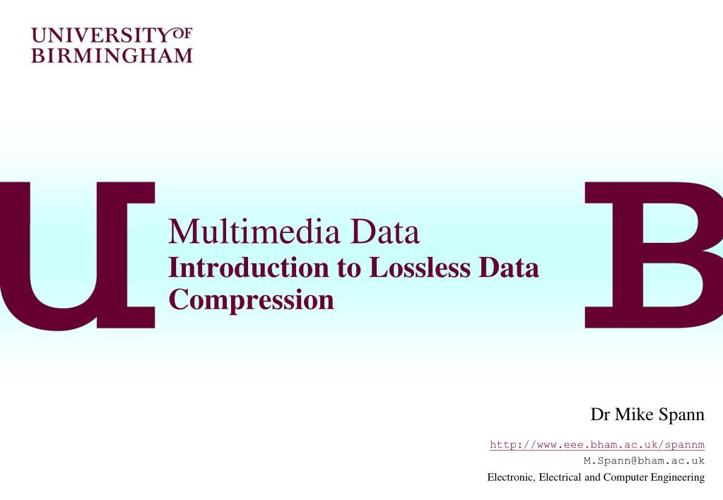 Multimedia DataIntroduction to Lossless Data Compression Dr Mike Spann http://www.eee.bham.ac.uk/spannm M.Spann@bham.ac.uk Electronic, Electrical and Computer Engineering