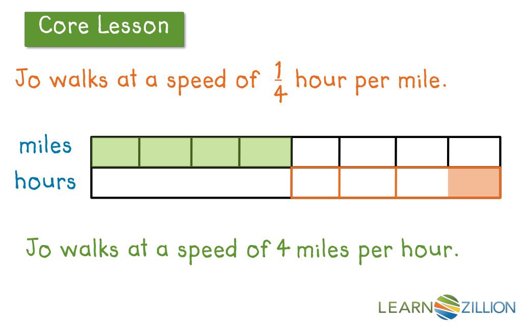1 4 Jo walks at a speed of hour per mile. miles hours Jo walks at a speed of 4 miles per hour.