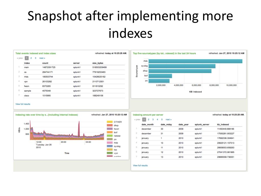 Splunk growth around the same time • Organic growth with other departments • Steady growth of indexed data • Introduction of new indexes • Security mandate to have Splunk on all servers