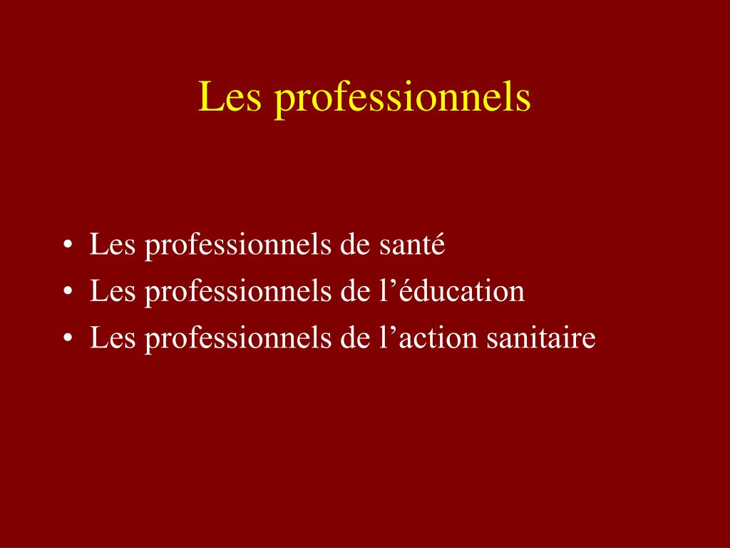 Les professionnels • Les professionnels de santé • Les professionnels de l’éducation • Les professionnels de l’action sanitaire