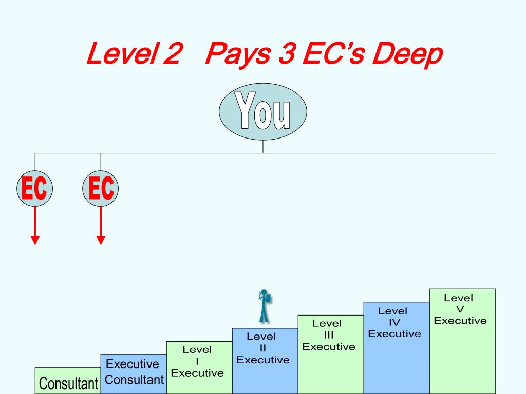 You EC Level V Executive Level IV Executive Level III Executive Level II Executive Level I Executive Executive Consultant Consultant Level 2 Pays 3 EC’s Deep EC