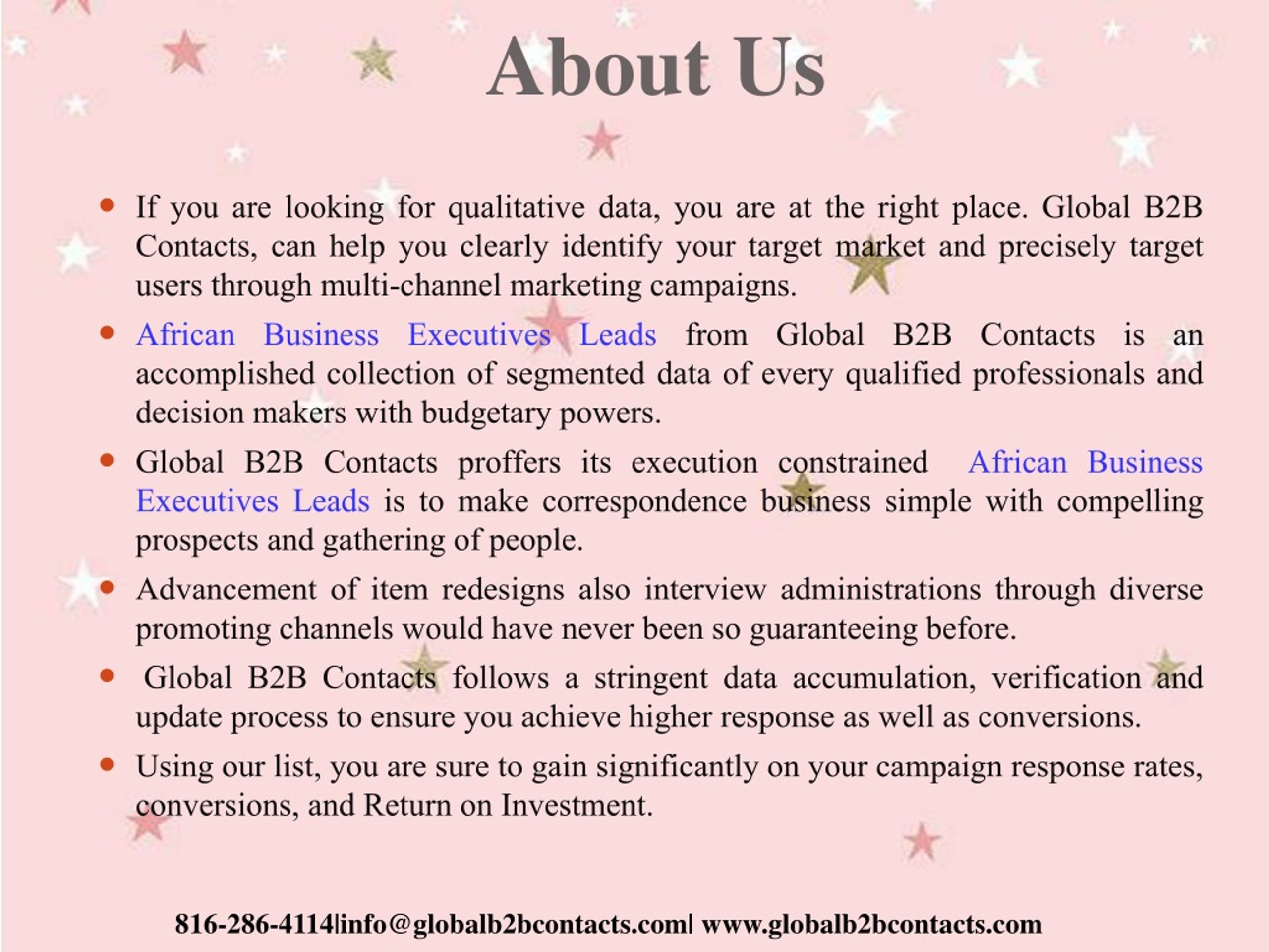Global B2B Contacts LLC African Business Executives Leads Free Email Campaign along With B2B Email List Purchase 816-286-4114|info@globalb2bcontacts.com| www.globalb2bcontacts.com