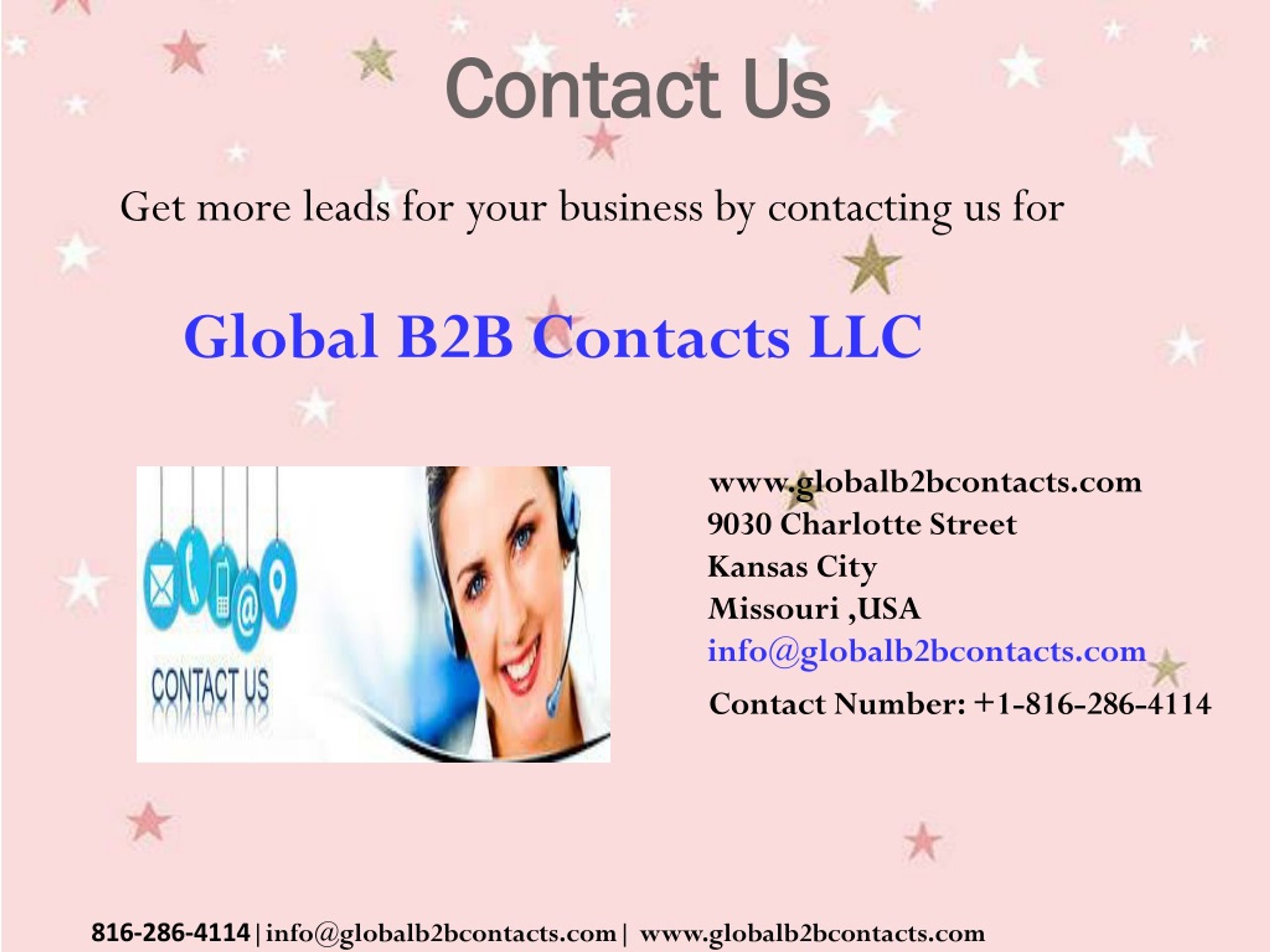 Contact Us Get more leads for your business by contacting us for Global B2B Contacts LLC www.globalb2bcontacts.com9030 Charlotte StreetKansas CityMissouri ,USAinfo@globalb2bcontacts.com Contact Number: +1-816-286-4114 816-286-4114|info@globalb2bcontacts.com| www.globalb2bcontacts.com