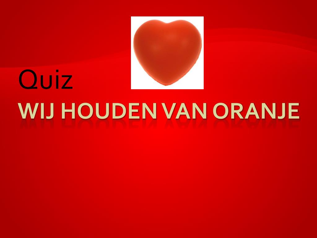 Quiz. Wij houden van Oranje. Deze quiz heeft 4 onderwerpen met elk 4 vragen. Er zijn dus in totaal 16 vragen. Je moet de vragen per thema op volgorde beantwoorden. Je begint dus bij de vraag van 100 punten. Je mag wel wisselen van thema. Klik op de ovaal van je keuze om naar de vraag te gaan.