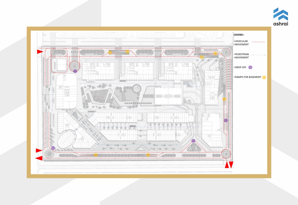22. LEGEND:: •VEHICULAR •MOVEMENT •PEDESTRIAN •MOVEMENT •DROP OFF •RAMPS FOR BASEMENT
