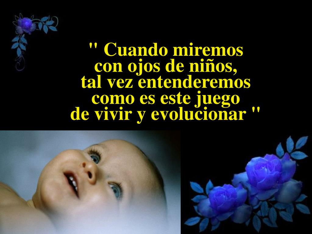 " Cuando miremos con ojos de niños, tal vez entenderemos como es este juego de vivir y evolucionar "