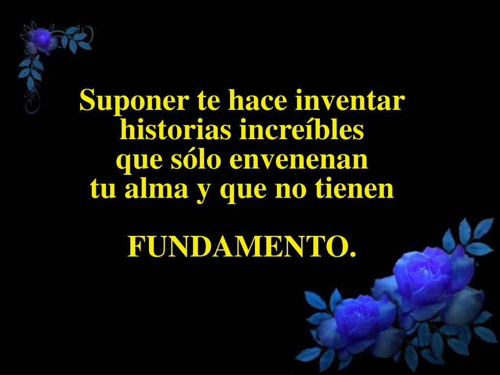 Suponer te hace inventar historias increíbles que sólo envenenan tu alma y que no tienen FUNDAMENTO.