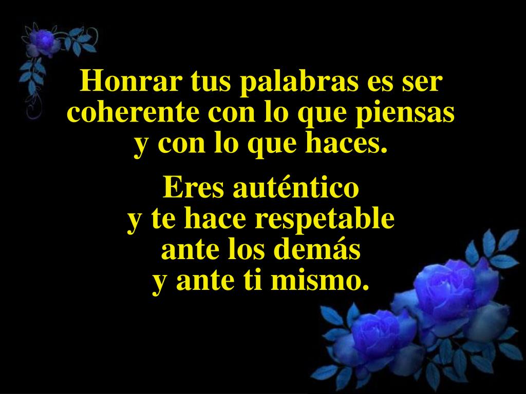 Honrar tus palabras es ser coherente con lo que piensas y con lo que haces. Eres auténtico y te hace respetable ante los demás y ante ti mismo.