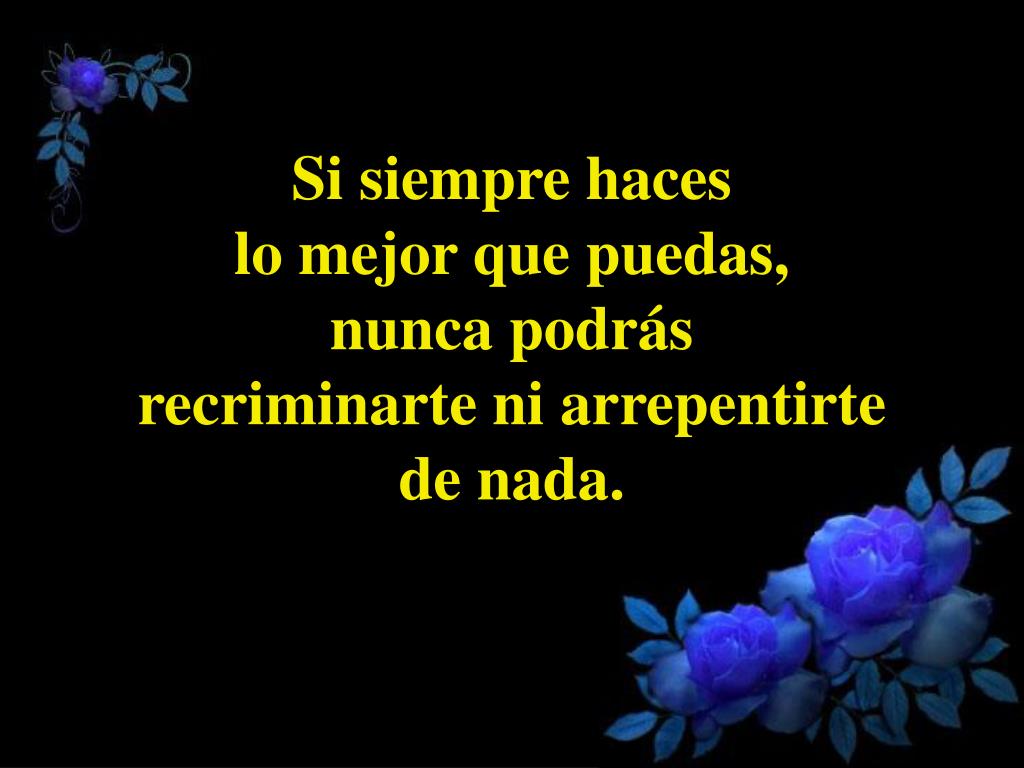 Si siempre haces lo mejor que puedas, nunca podrás recriminarte ni arrepentirte de nada.