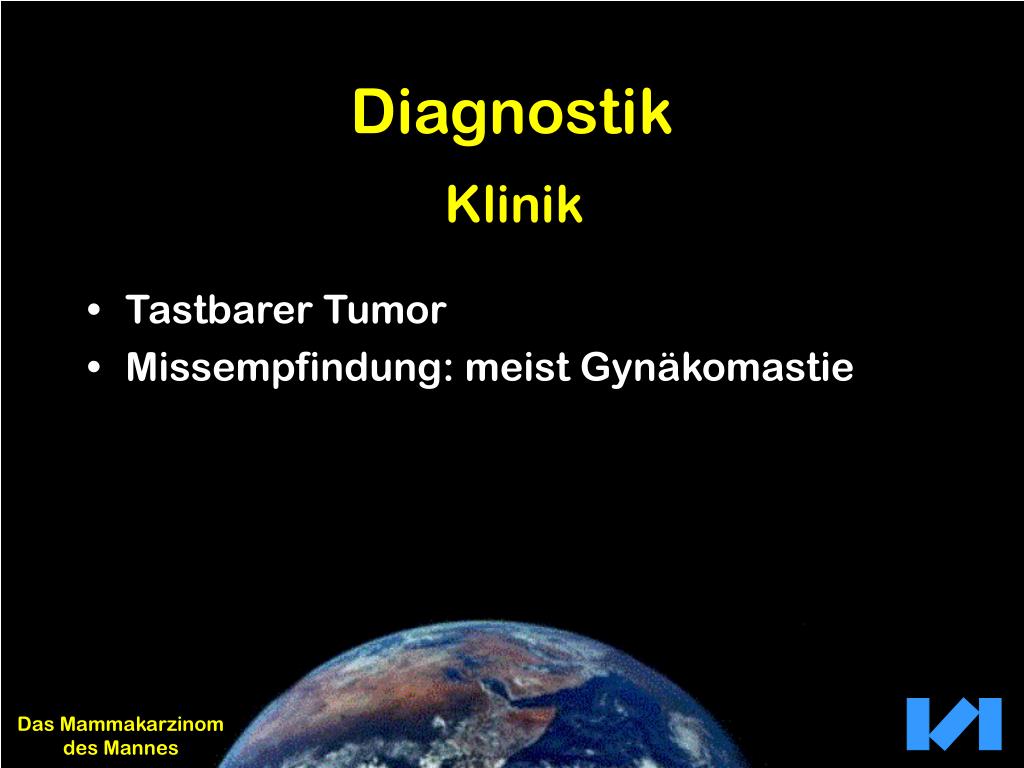 Diagnostik Klinik • Tastbarer Tumor • Missempfindung: meist Gynäkomastie Das Mammakarzinom des Mannes