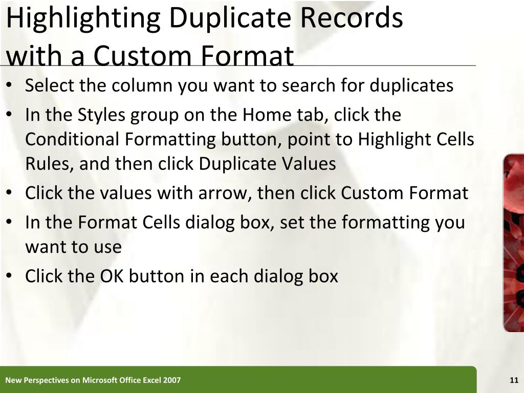 Highlighting Duplicate Records with a Custom Format New Perspectives on Microsoft Office Excel 2007