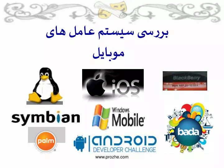 مقدمه ای بر ایجاد سیستم عامل ها • انواع سيستم عامل ها • بررسی سيستم عامل سيمبين (SymbianOS) • بررسی سيستم عامل آندروید گوگل (AndrOid) • بررسی سيستم عامل ویندوز موبایل (WindoSMObiLe) • بررسی سيستم عامل مک (اپل) (appLeMaCiOS) • نتیجه گیری www.prozhe.com