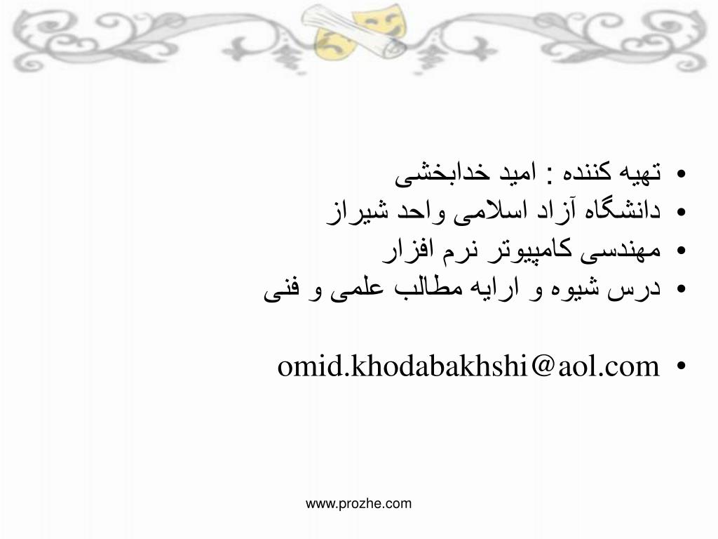تهیه کننده : امید خدابخشی • دانشگاه آزاد اسلامی واحد شیراز • مهندسی کامپیوتر نرم افزار • درس شیوه و ارایه مطالب علمی و فنی • omid.khodabakhshi@aol.com www.prozhe.com