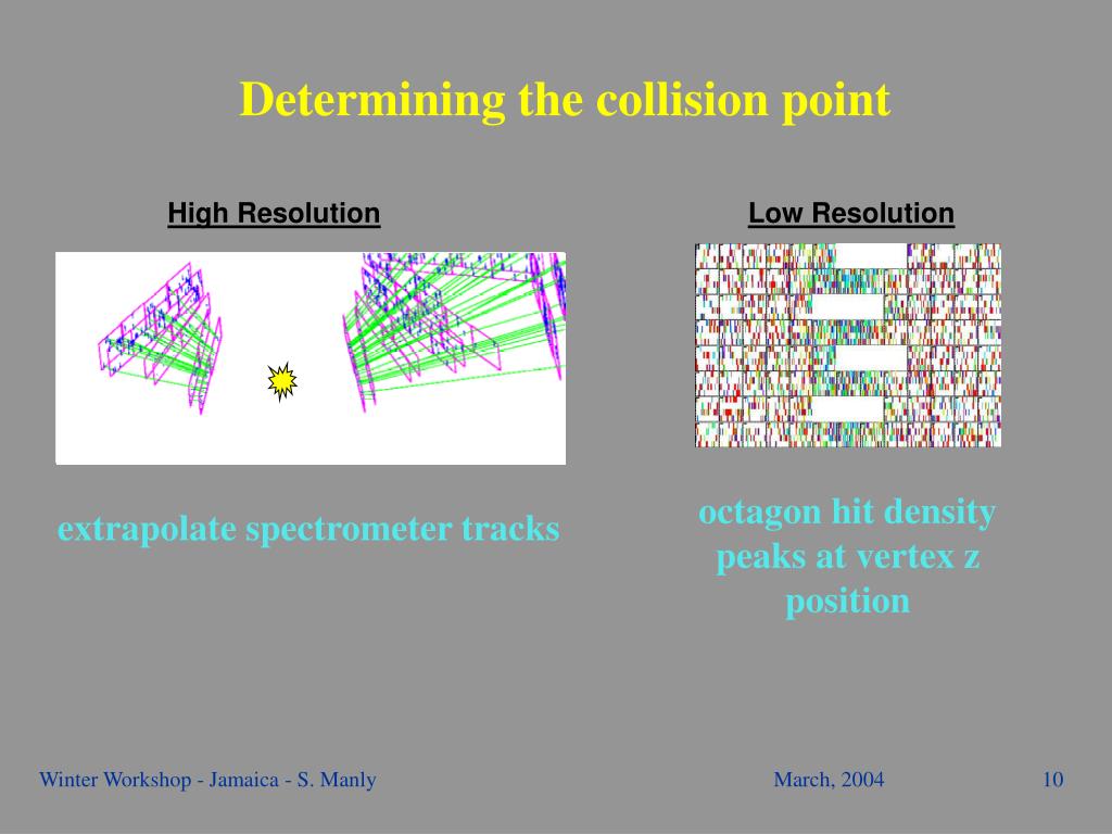 High Resolution Low Resolution Determining the collision point octagon hit density peaks at vertex z position extrapolate spectrometer tracks Winter Workshop - Jamaica - S. Manly