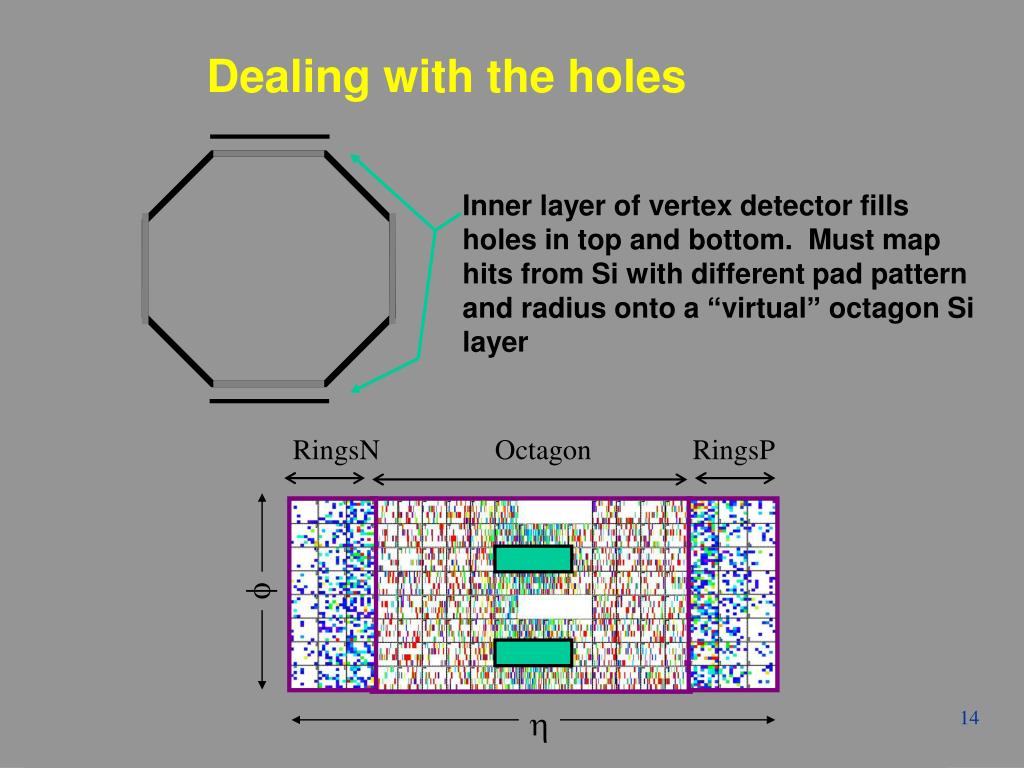 Inner layer of vertex detector fills holes in top and bottom. Must map hits from Si with different pad pattern and radius onto a “virtual” octagon Si layer RingsN Octagon RingsP f h Dealing with the holes Winter Workshop - Jamaica - S. Manly