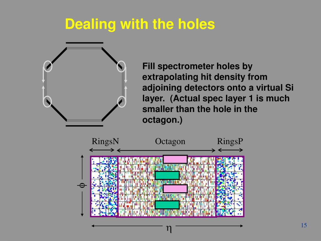 RingsN Octagon RingsP f h Dealing with the holes Fill spectrometer holes by extrapolating hit density from adjoining detectors onto a virtual Si layer. (Actual spec layer 1 is much smaller than the hole in the octagon.) Winter Workshop - Jamaica - S. Manly