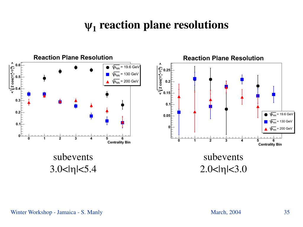 1 reaction plane resolutions subevents 3.0<|h|<5.4 subevents 2.0<|h|<3.0 Winter Workshop - Jamaica - S. Manly
