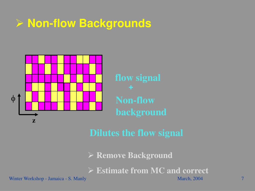 f z + Non-flow background • Non-flow Backgrounds flow signal Dilutes the flow signal • Remove Background • Estimate from MC and correct Winter Workshop - Jamaica - S. Manly