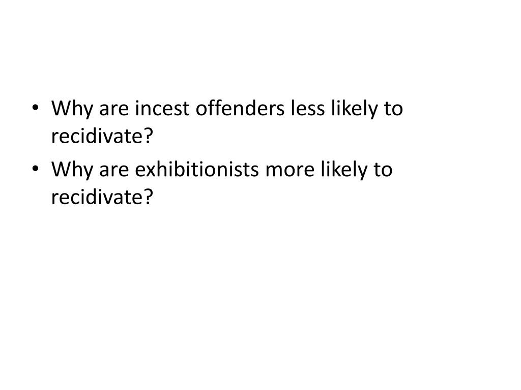 Why are incest offenders less likely to recidivate? • Why are exhibitionists more likely to recidivate?