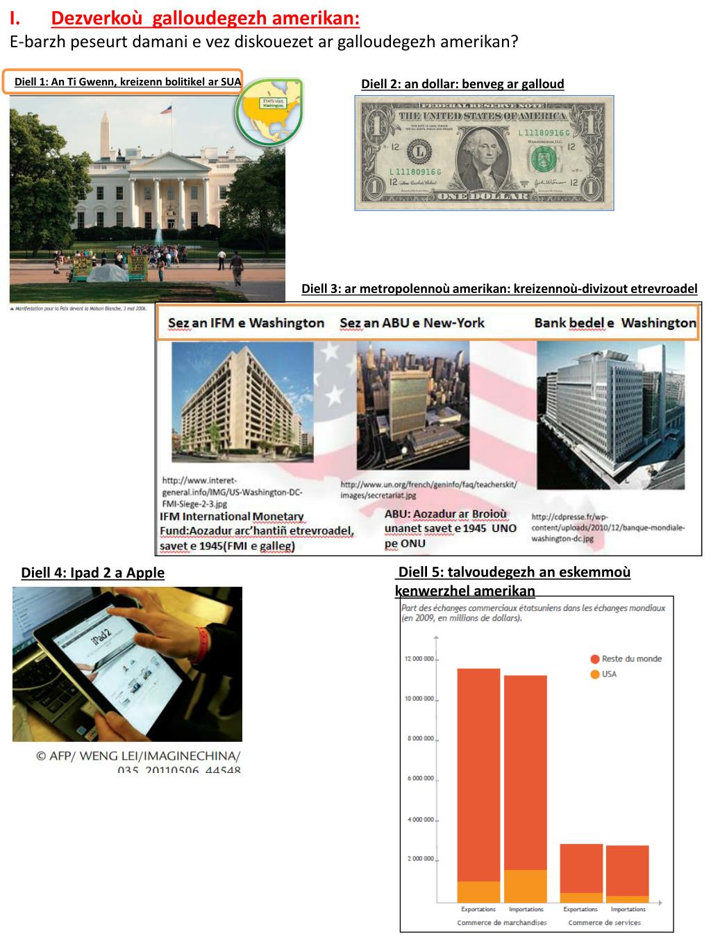 Dezverkoùgalloudegezh amerikan: E-barzh peseurtdamani e vezdiskouezet ar galloudegezh amerikan? Diell 1: An Ti Gwenn, kreizennbolitikel ar SUA Diell 2: an dollar: benveg ar galloud Diell 3: ar metropolennoù amerikan: kreizennoù-divizoutetrevroadel • Diell5: talvoudegezh an eskemmoùkenwerzhel amerikan Diell 4: Ipad 2 a Apple
