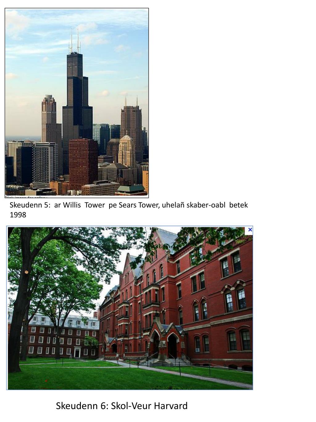 Skeudenn 5: ar Willis Tower pe Sears Tower, uhelañskaber-oablbetek 1998 Skeudenn 6: Skol-Veur Harvard