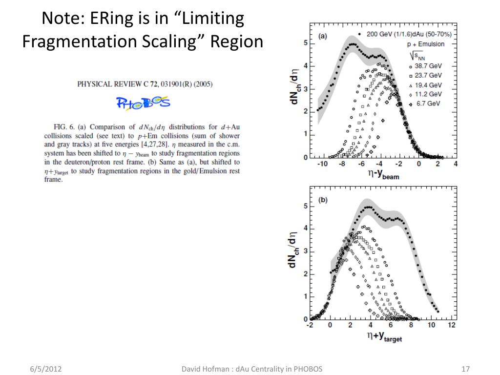 Note: ERing is in “Limiting Fragmentation Scaling” Region David Hofman : dAu Centrality in PHOBOS