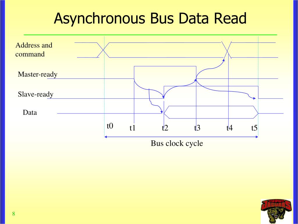Asynchronous Bus Data Read Address and command Master-ready Slave-ready Data t0 t1 t2 t3 t4 t5 Bus clock cycle
