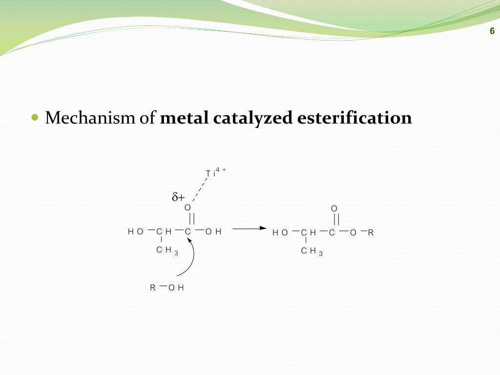 Temperature Vacuum (dehydration process) Catalyst Recommended paper: T. Maharana, B. Mohanty, Y.S. Negi, Progress in Polymer Science 34 (2009) 99–124 Key reaction conditions for making polyesters: (that you can also play with)