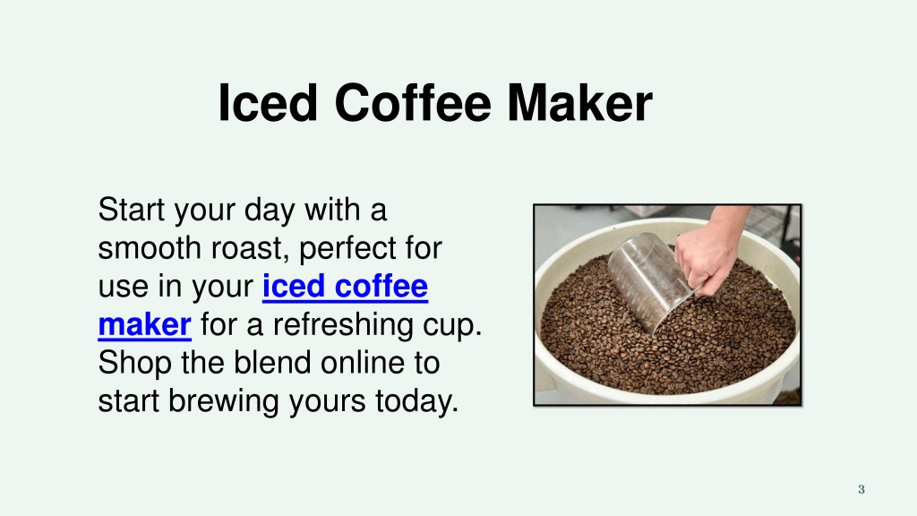 Iced Coffee Maker Start your day with a smooth roast, perfect for use in your iced coffee maker for a refreshing cup. Shop the blend online to start brewing yours today. 3
