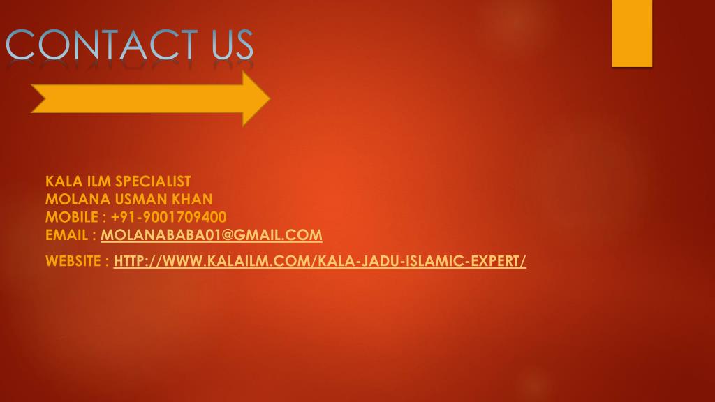 CONTACT US Kala ilm Specialist Molana Usman Khan Mobile : +91-9001709400 Email : molanababa01@gmail.com WEBSITE : http://www.kalailm.com/kala-jadu-islamic-expert/