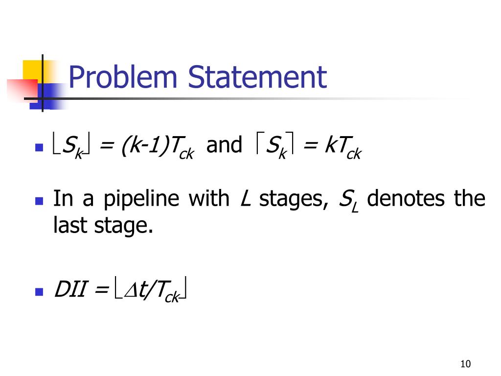 Problem Statement • Sk = (k-1)Tck and Sk = kTck • In a pipeline with L stages, SL denotes the last stage. • DII = t/Tck