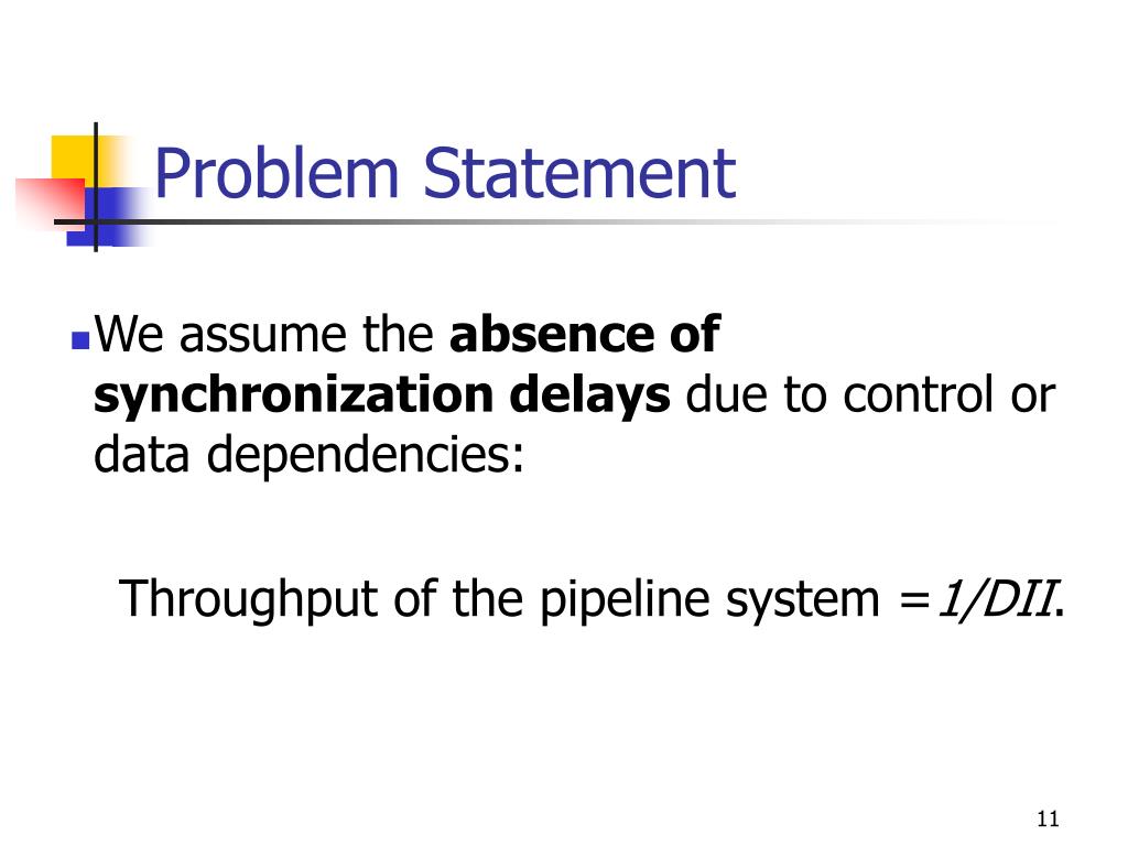Problem Statement • We assume the absence of synchronization delays due to control or data dependencies: Throughput of the pipeline system =1/DII.