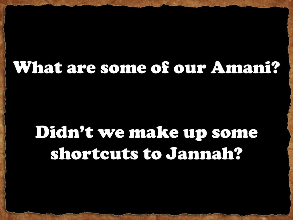 What are some of our Amani? Didn’t we make up some shortcuts to Jannah?
