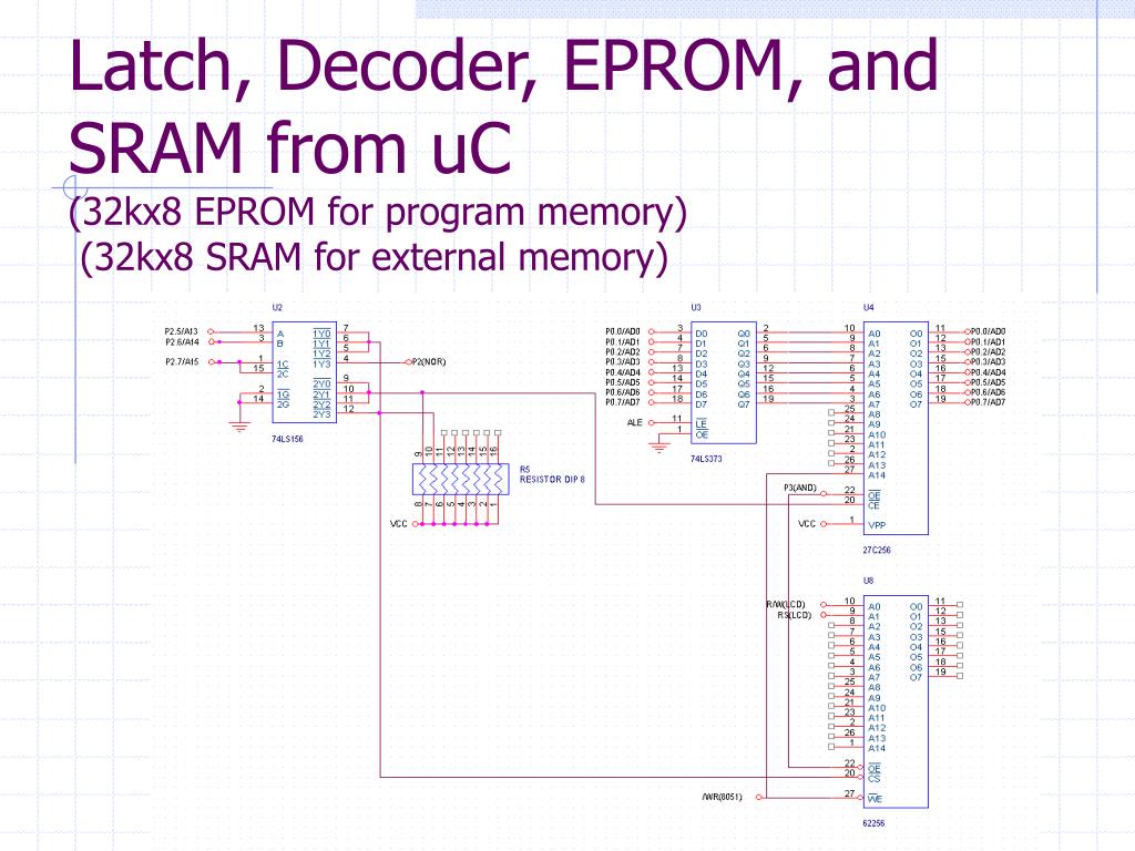 Latch, Decoder, EPROM, and SRAM from uC(32kx8 EPROM for program memory) (32kx8 SRAM for external memory)