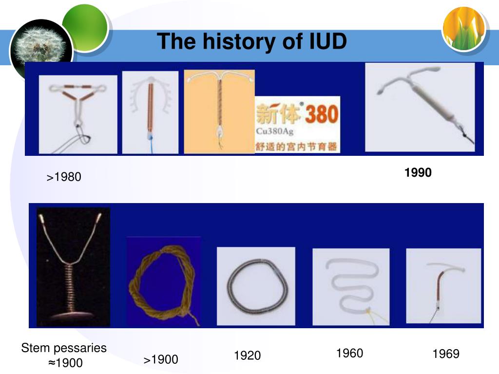 The history of IUD 1990 >1980 1960 1969 1920 >1900 Stem pessaries ≈1900