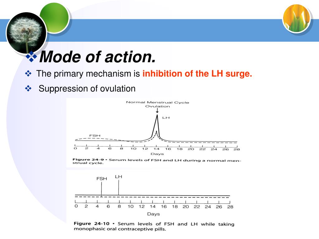 Mode of action. • The primary mechanism is inhibition of the LH surge. • Suppression of ovulation
